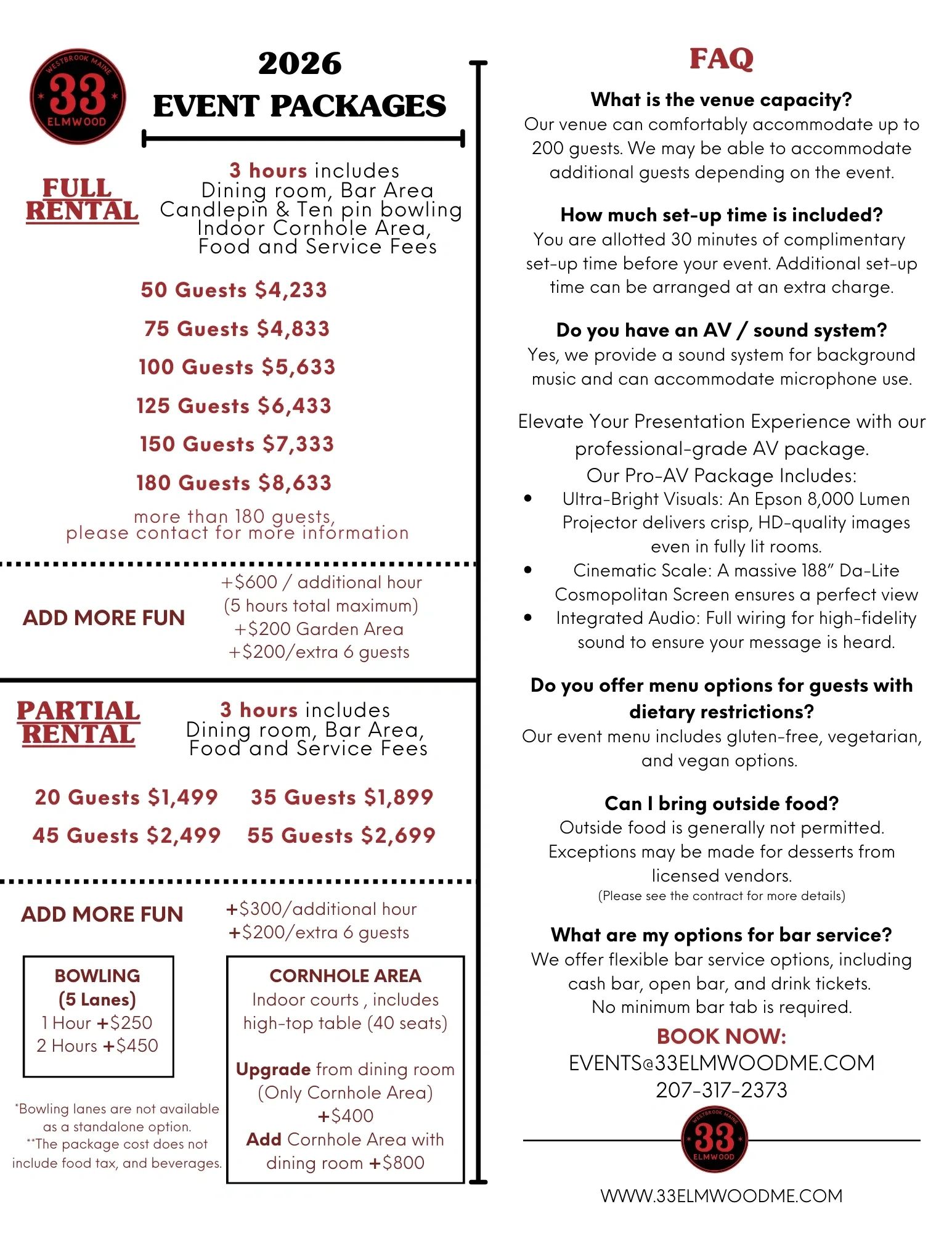 We’re currently operating as an events-only venue for the remainder of the year, so we don’t have regular public hours at this time. If you’re interested in booking or attending an event, we’d be happy to provide more details — just let us know what you’re looking for!